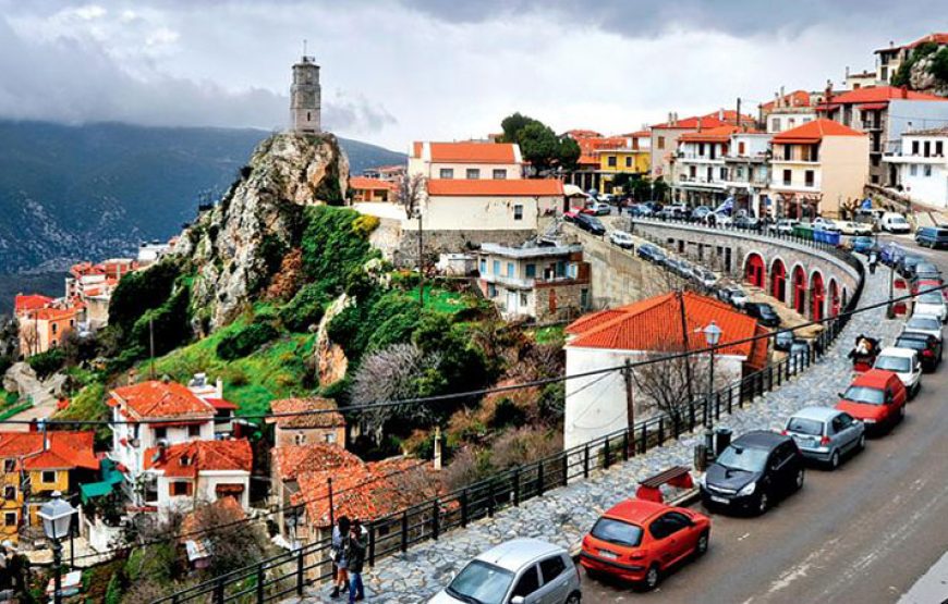καφέ, αγορές παραδοσιακών προϊόντων και βόλτα σε ένα από τα πιό γνωστά και γραφικά ορεινά Θέρετρα της. Συνεχίζουμε για τους Δελφούς , θα έχουμε ελεύθερο χρόνο για να επισκεφθούμε το μουσείο και τον αρχαιολογικό χώρο!Δελφοί, ο ομφαλός της γης.Ο αρχαιολογικός χώρος των Δελφών είναι ένας από τους σημαντικότερους και πιο πλούσιους σε ευρήματα τόπους της Ελλάδας. Οι Δελφοί, αποτέλεσαν για αιώνες το θρησκευτικό και πνευματικό κέντρο των αρχαίων Ελλήνων καθώς εκεί βρισκόταν το πανελλήνιο ιερό και το σπουδαιότερο μαντείο της Αρχαίας Ελλάδας.Στο αρχαιολογικό μουσείο παρουσιάζονται σπουδαία εκθέματα από τις ανασκαφές και έχει πρόσφατα ανακαινιστεί προσφέροντας σημαντικές πληροφορίες σχετικά με την πλούσια ιστορία του τόπου και του μαντείου.για την κοσμοπολίτικη Αράχωβα . Eκεί θα έχετε στην διάθεση σας ελεύθερο χρόνο περίπου 3,5 ώρες για καφέ και μεσημεριανό γεύμα(έξοδα ατομικά) . Περιηγηθείτε στα στενά σοκάκια της πόλης με την παραδοσιακή αρχιτεκτονική και θαυμάστε την άγρια ομορφιά που προσφέρουν οι πλαγιές του Παρνασσού. Στον απόκρημνο βράχο θα δείτε τον πύργο με το ρολόι ενώ λίγο πιο δίπλα στέκεται ο ναός των Εισοδίων της Θεοτόκου και το παλιό δημοτικό σχολείο. Το Μαθητικό αυτό κτήριο χτίστηκε με τη δωρεά του Αντρέα Συγγρού και πλέον έχει μετατραπεί σε λαογραφικό μουσείο. Στο νότιο τμήμα της κωμόπολης θα συναντήσετε τον ιστορικό ναό του Αγίου Ιωάννη με τις μοναδικές βυζαντινές τοιχογραφίες και λίγο πιο δίπλα το ξωκλήσι της Ευαγγελίστριας με τον ιστορικό βράχο που φιλοξενεί την Αραχωβίτικη σημαία που ήταν η πρώτη της επαναστατημένης Ρούμελης θα παραμείνουμε. Επιστροφή στην Αθήνα με